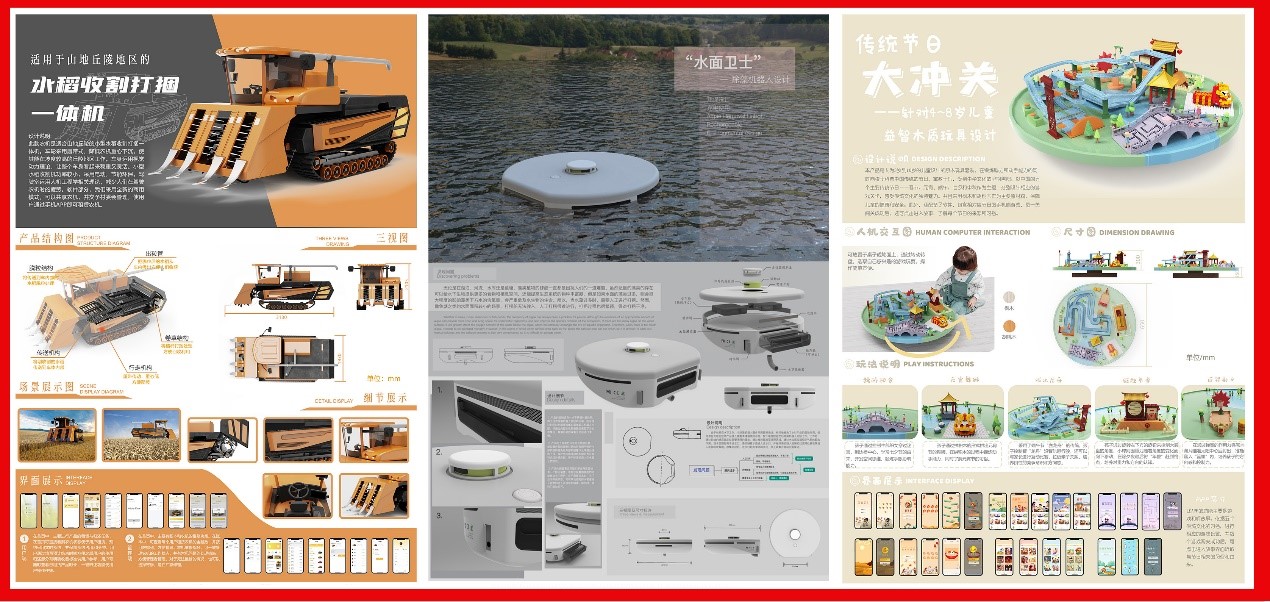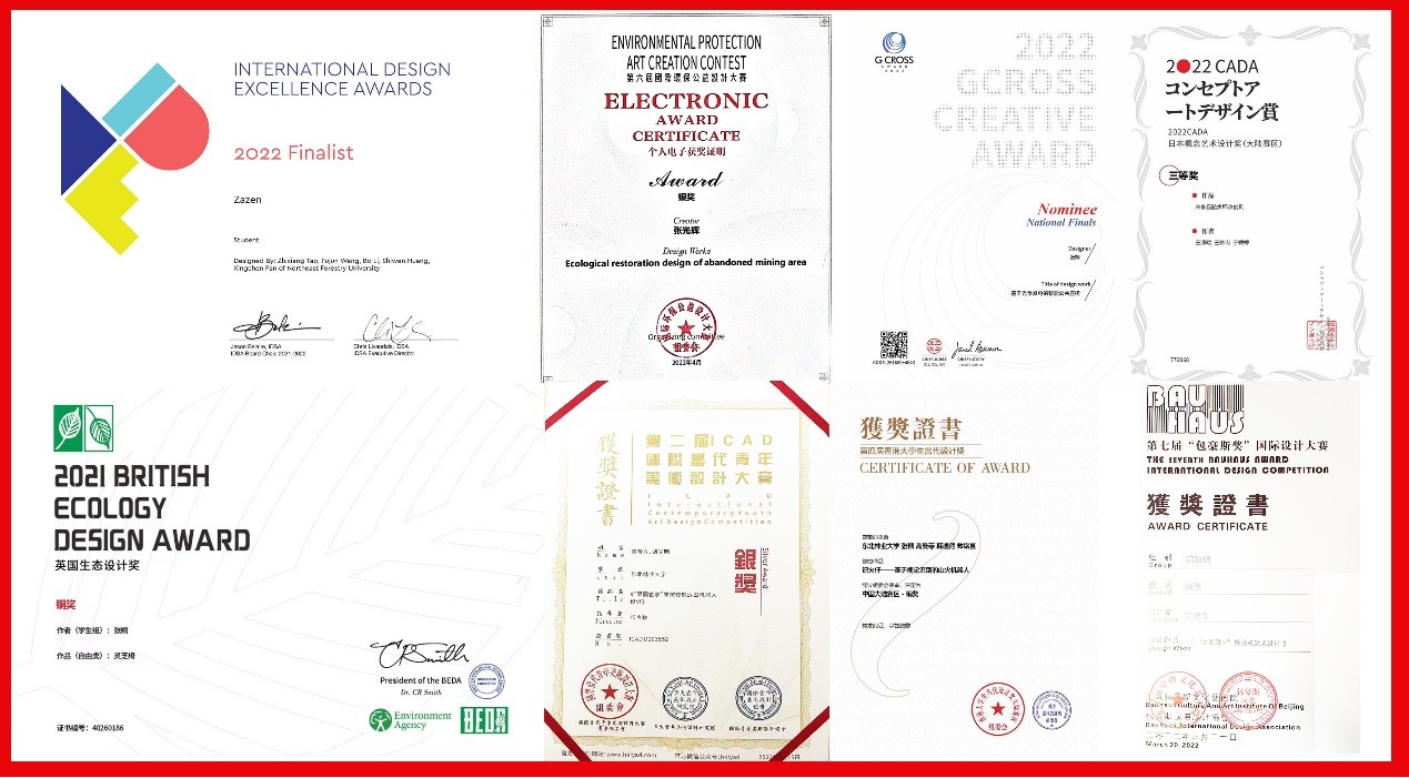 第十届全国高校数字艺术设计大赛、第六届国际环保公益大赛、2022美国IDEA奖、英国生态设计奖、新加坡金沙艺术设计大赛、G Cross全球大学生创新设计大赛、BICC中英国际创意大赛、第四届CADA日本概念艺术设计奖、第四届香港大学生当代设计奖、第二届ICAD国际当代青年美术设计大赛、第七届“包豪斯奖”国际设计大赛…… 2022年春季学期至今,开云kaiyun官方网站工业设计专业师生凭借《Ecological restoration design of abandoned mining area》、《水稻收割打捆一体机》、《“水面卫士”除藻机器人》、《识火仔—基于视觉识别的山火机器人》、《“果园管家”智能果树修剪返田机器人设计》、《Zazen》等一系列生态创意设计作品荣获了十二项国际、国内设计大赛的一等奖3项(金奖)、二等奖12项(银奖)、三等奖(铜奖)23项,省部级奖项88项。