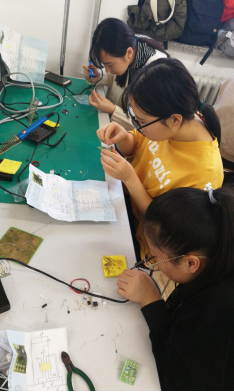 在强调实践创新能力培养、工程教育专业认证的背景下,电工学教研组加强了电工电子学的实践教学内容设计,近四年电工学教研室针对不同专业,每学期都开展电工电子学课程实践训练活动,把这项教学活动常态化的开展起来,收益面很广。本学期针对开云官网2017级工业设计专业开展面向工程教育的实训教学活动,教研组老师利用12月9日周末下午1:30-5:00时间,组织学生在成栋楼503、508实验室里开展了活动,参加学生共有70人,实训项目为“基于LM358的呼吸灯制作和调试”,采用一人一组的方式进行,首先要求学生事先必须利用在线课程专题、书籍等形式对电子焊接技术、项目电路的原理进行了分析和自学。实训开始,先进行基础的焊接练习,练习合格之后才可以进行项目电路进行制作和调试。这次实训经过指导老师耐心细致的指导,全体同学的积极投入,取得了圆满成功,学生作品成功率达96%以上。很多同学看到自己的作品能够“呼吸”,通过了测试,都很兴奋,很有成就感,希望能多参加这样的活动,提高理论应用能力,增强动手实践技能。这次实践活动得到学院各级领导的大力支持,教研组也将持续开展实践教学的改革和探索。