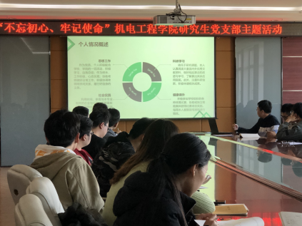 获得2019年研究生国家奖学金并考取哈尔滨工业大学博士的机械类党支部党员缪骞同学首先进行了经验分享。她简要介绍了研究生阶段取得的科研成果,结合自身分析了如何正确处理工作、科研、生活之间冲突,合理分配时间精力。她谈到,“读书为了成才,国家培养我们,是为了我们长大之后成才报国,因此我们来到这里的目的就是学习文化知识,学习做人的道理,学习与人相处之道。工作和科研以及生活是不能混为一谈,作为研究生要做的不是抱怨,而是去完成工作,调整自己,适应环境。琐碎瞬间组成的人生远比单一的生活更加有趣和多彩。读研期间做过的每一件事、面临的每一次挑战、每一次面对老师的教诲,都是一种人生宝贵财富。拿出本子,记录每天的任务,你会发现自己真的很强大。”