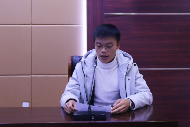 机器人实验班学生代表王亚炜同学代表发言,他表达了对学院的感谢,他希望所有同学持续学习,团结协作,互帮互助,共同成长与进步,在将来的工作中为学校争光,为祖国建设添砖加瓦。