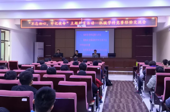 2019年11月27日下午,开云kaiyun官方网站机械电子党支部举行“不忘初心,牢记使命”主题教育活动,以“机械学科竞赛经验交流”为主题,邀请机械电子支部党员杨家武老师和2名机械电子工程专业学生代表现场分享经验,交流学习心得。2018级、2019级机械类专业同学参加学习经验交流会。活动由机械电子党支部书记李三平主持。