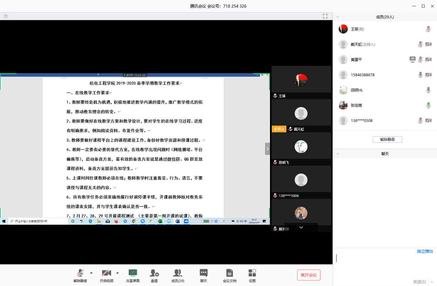 身为专业教师的学院副院长张佳薇、朱良宽对网络授课纪律、学科建设、研究生培养、科研、毕业设计等工作提出明确要求。孙丽萍、唐文秀、宋佳音、刘一琦等老教师、年轻教师和大家一道,分享了网络授课准备工作与测试心得,围绕如何精心设计课程、选择网络授课平台、应对突发问题、关注重点学生等方面进行了讨论,献言建策、交流经验。