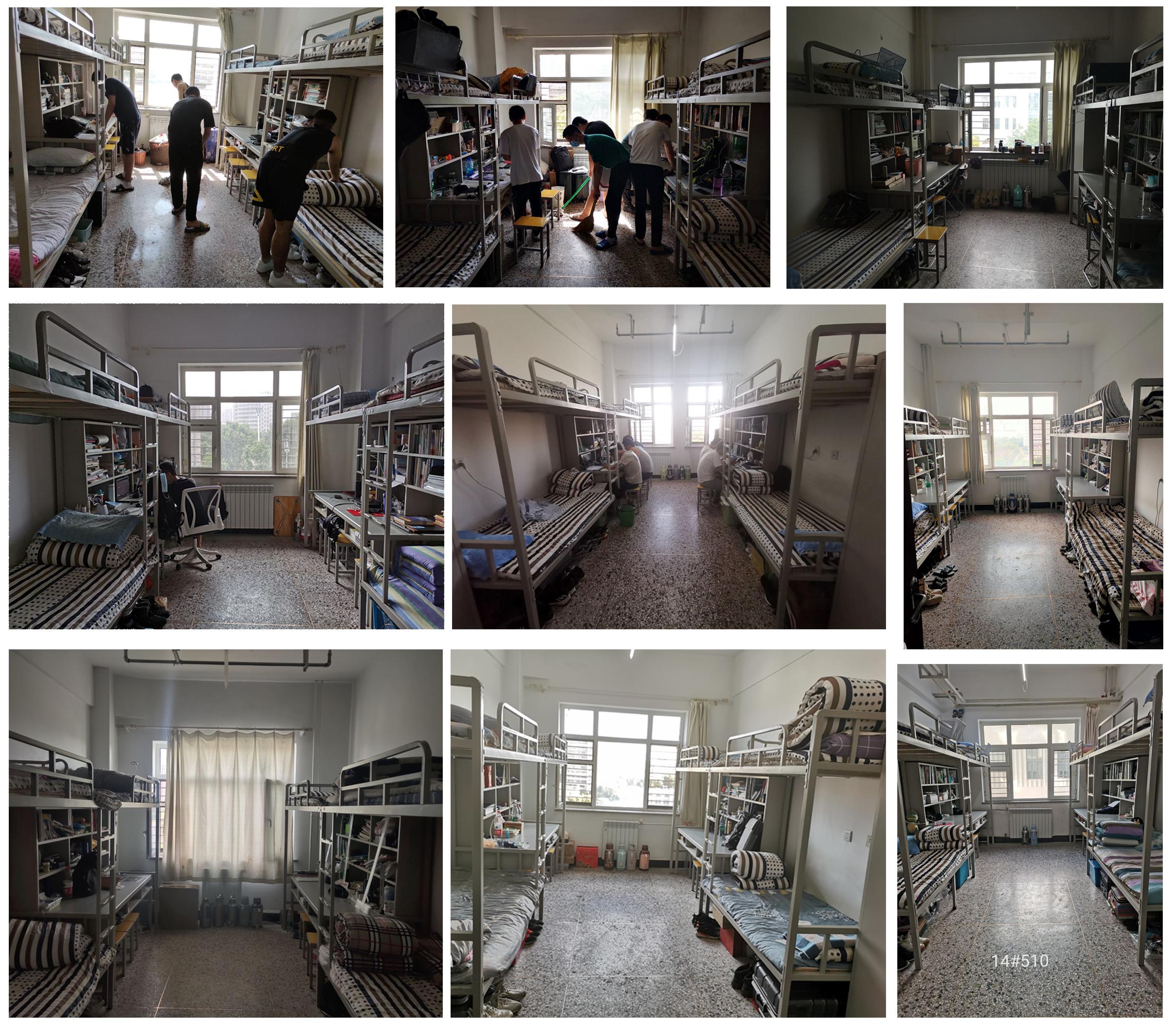 8月31日至9月1日,已经返校并通过核酸检测的2018级、2019级学生响应学院号召,以寝室为单位开展一场“卫生寝室大比拼”。久违的室友格外珍惜重逢的机会,合作起来依然默契十足,有负责地面整洁的、有设计床铺“颜值”的、有“狠抓”公共物品摆放顺序的,分工十分明确,劳动的汗水换来收获,爽朗的笑声此起彼伏。学院也组织了验收,现场效果普遍良好。