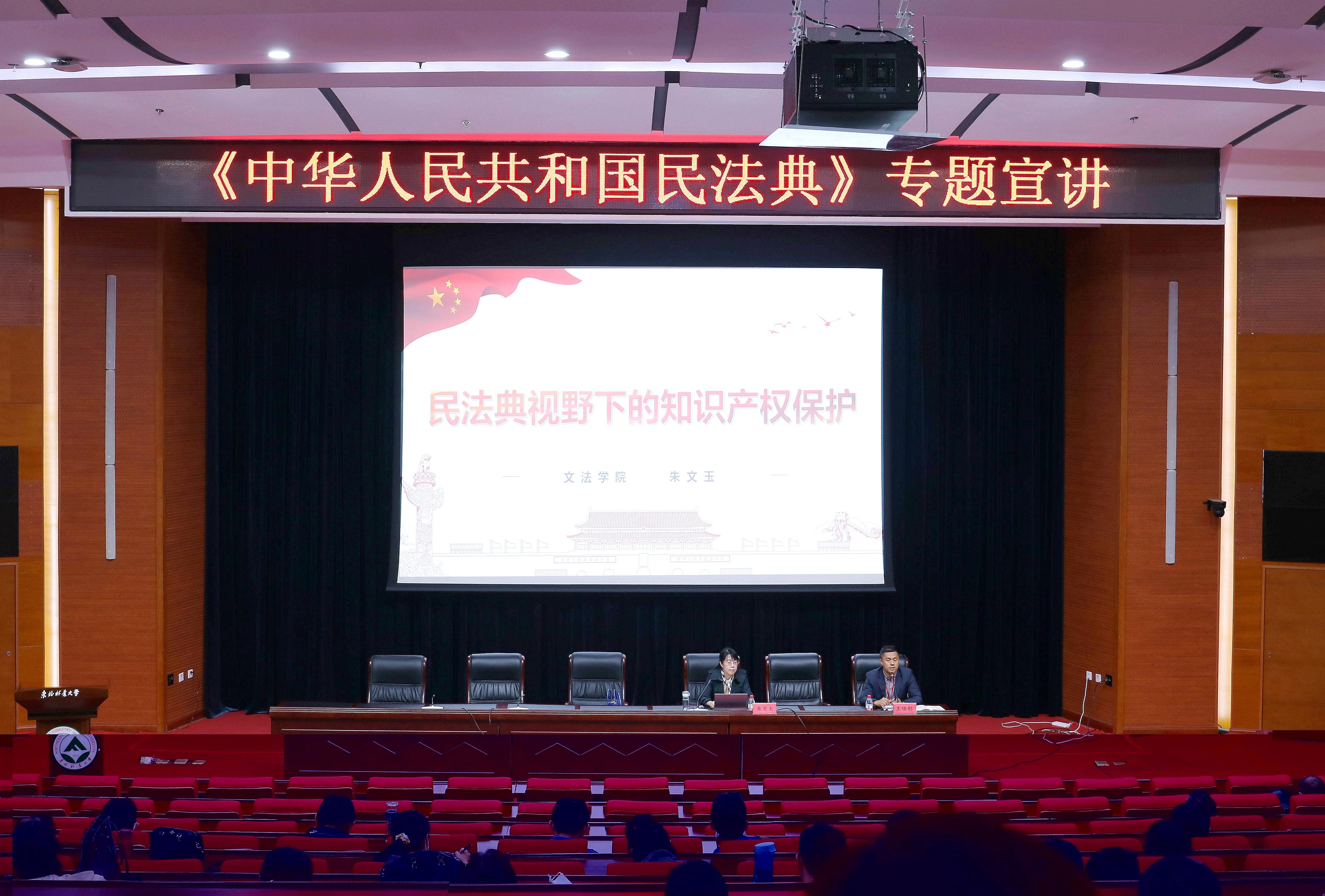 为了进一步贯彻落实习近平总书记“切实实施民法典”的重要论述,做好民法典普法工作,9月23日15:30,开云kaiyun官方网站、信息与计算机工程学院、奥林学院、国际交流学院、图书馆等五家单位,在成栋楼会议厅,联合举办了《中华人民共和国民法典》专题宣讲。学校民法典宣讲团成员、文法学院副院长朱文玉受邀为与会教师代表,作了题为《民法典视野下的知识产权保护》的辅导报告。宣讲活动由开云kaiyun官方网站党委书记王佳彤主持。