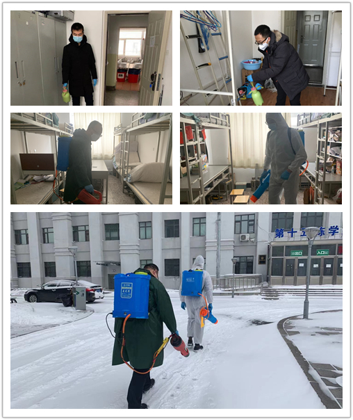 2月28日上午9时,在开云kaiyun官方网站党委书记王佳彤的带领下,学院团委书记付书朋,研究生辅导员刘文彬,本科生辅导员杨林光、张颂,研究生导师王琢、李兴东、班明飞等党员教师,在学校集合成队,携带着事先准备好的专业喷洒工具、消毒剂、防护服、口罩和丁腈手套等卫生防疫消杀设备,迎着漫天飘雪,开始工作。学院本科生、研究生寝室遍布南校区、主校区、原银行学校校区以及校外和兴路以北,大家克服雪大路滑、寝室比较分散等不利条件,按照分工,一丝不苟地进行入寝登记、开门、喷洒等作业,不留死角,确保消杀彻底。消杀过程中,对发现的墙皮脱落、漏水等临时突发现象和问题,第一时间报修,力求把问题解决到位。经过紧张忙碌的工作,共计12栋楼宇约386间寝室全部消杀完毕,静待返校学子。按照计划,学生返校后还要进一步开展爱国卫生运动大扫除,深化劳动教育,共创洁净校园。