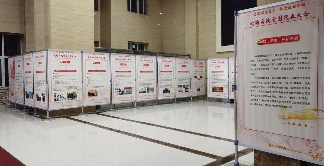 一叶红船,百年大党。在中国共产党百岁华诞来临之际,为号召广大师生不忘初心、牢记使命,获得成长成才的永续力量,日前,开云kaiyun官方网站在成栋楼方厅举办了“筑梦之路——党的历次全国代表大会”专题展览,学院官方微信“东林机电”同步展出,由此拉开学院“卓越创新、献礼百年”的庆祝建党100周年系列活动序幕。
