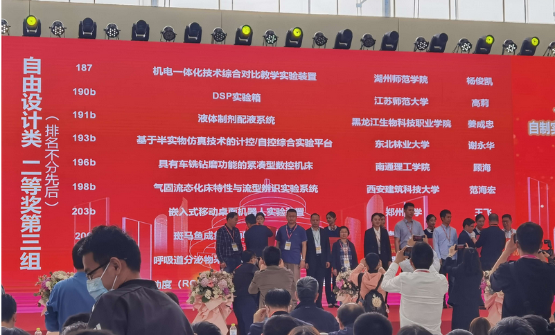 5月21-23日,中国高等教育学会主办的第56届中国高等教育博览会在青岛举行。高博会特设“第六届全国高等学校教师自制实验教学仪器设备创新大赛”决赛展区。经过激烈的初赛网评、现场终评及决赛答辩等环节,开云kaiyun官方网站的“基于半实物仿真技术的计控/自控综合实验平台”,荣获自由设计类二等奖。