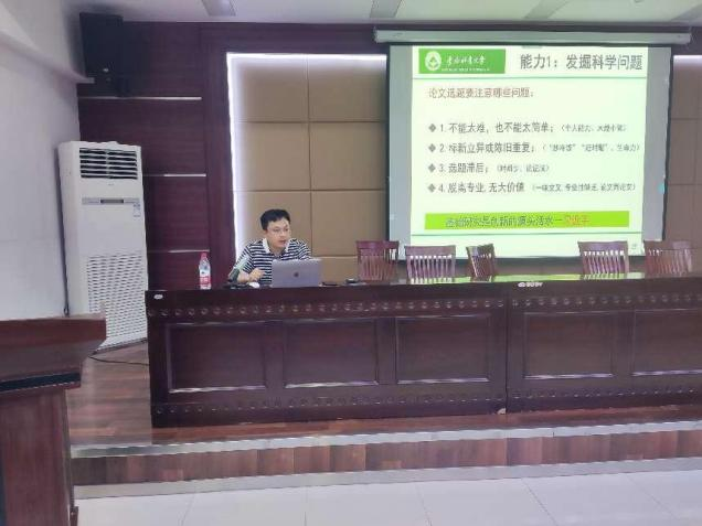 专题讲座中,孙老师从发掘科学问题、使用科研工具、发表学术论文和撰写毕业论文等四个角度为同学们传授论文写作方法和科研选题思路。同时针对目前部分研究生存在的学习深度不足、文献调研数量少、文献检索能力差、找不到科研切入点等问题,列举了自己在科研道路上遇到的具体问题及解决办法与同学们进行探讨,以自身科研经历中的实例启发同学们要树立自己的学术理想,对科学研究保持好奇心,提高自己的科研能力,完成从“被动接受知识”到“主动寻求知识”的转变。