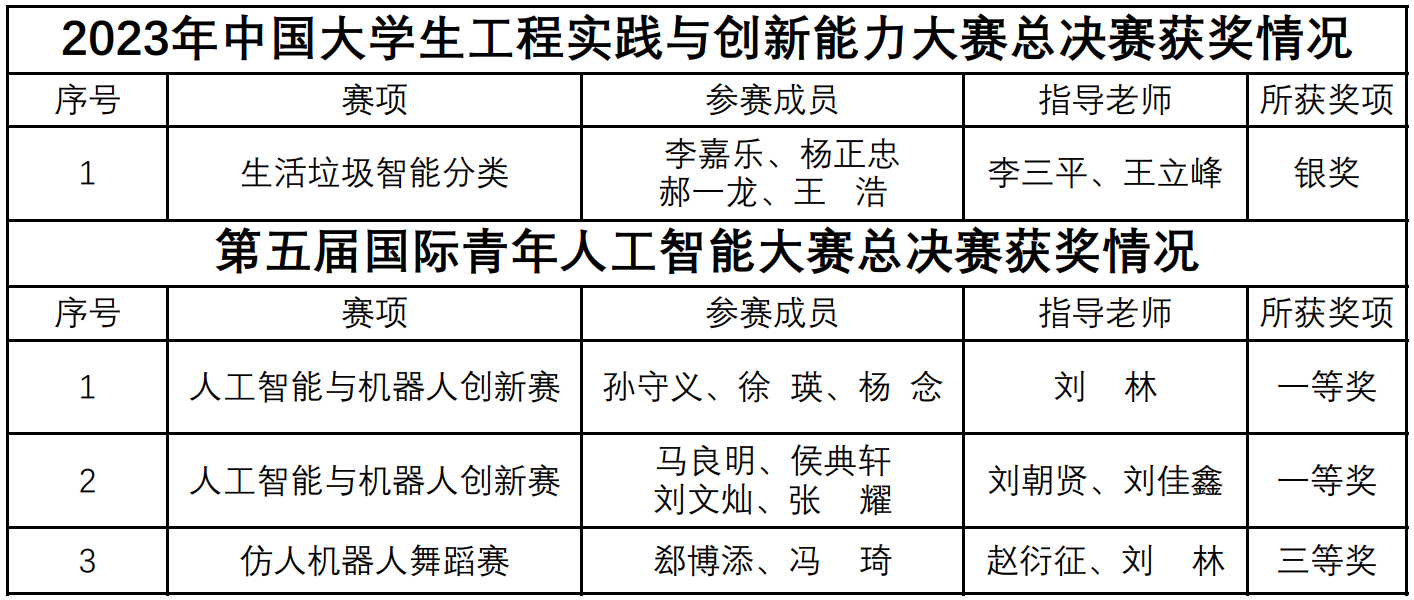近日,2023年中国大学生工程实践与创新能力大赛总决赛、第五届国际青年人工智能大赛总决赛相继闭幕。学子荣获中国大学生工程实践与创新能力大赛银奖,在“智能+”赛道中首次入围全国总决赛。在国际青年人工智能大赛,学子首次参赛并斩获一等奖2项、三等奖1项。