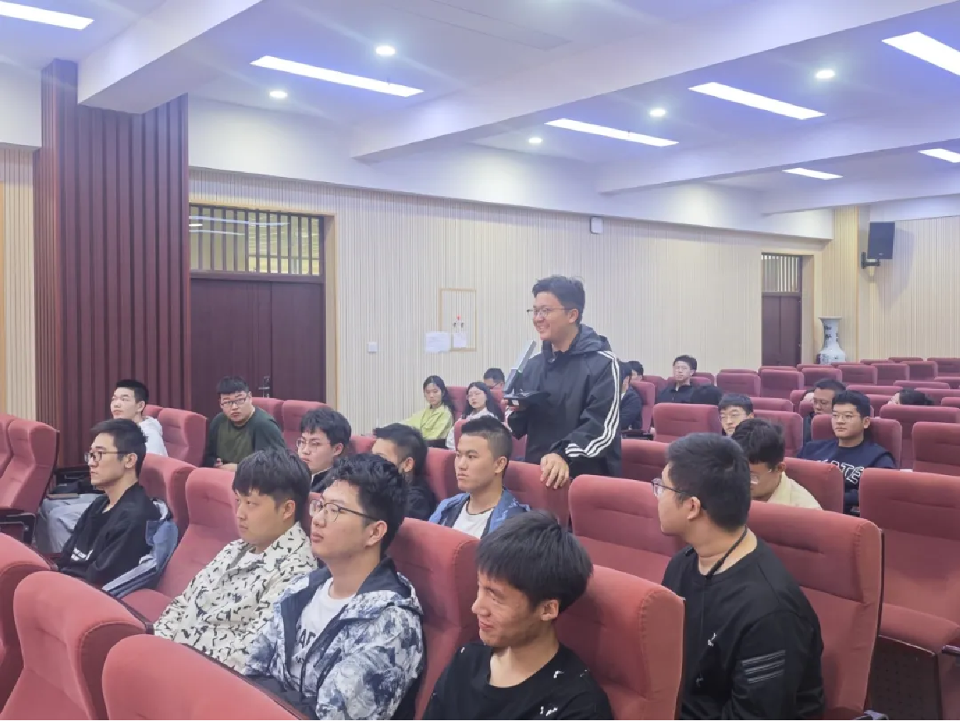 林经理分享结束后,现场掌声雷动,同学们直呼“干货满满”。随后,林经理与同学们就面试时存在的问题和疑惑进行互动交流,现场气氛热烈,同学们纷纷表示,能听到有着10余年工作经验的资深面试官进行经验分享给予了他们秋招求职极大的信心。