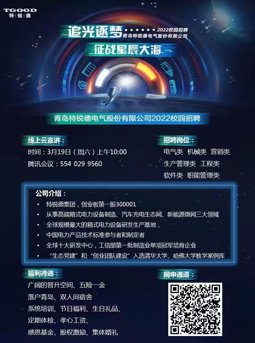【招聘信息】追光逐梦,征战星辰大海|青岛特锐德电气股份有限公司2022校园招聘
