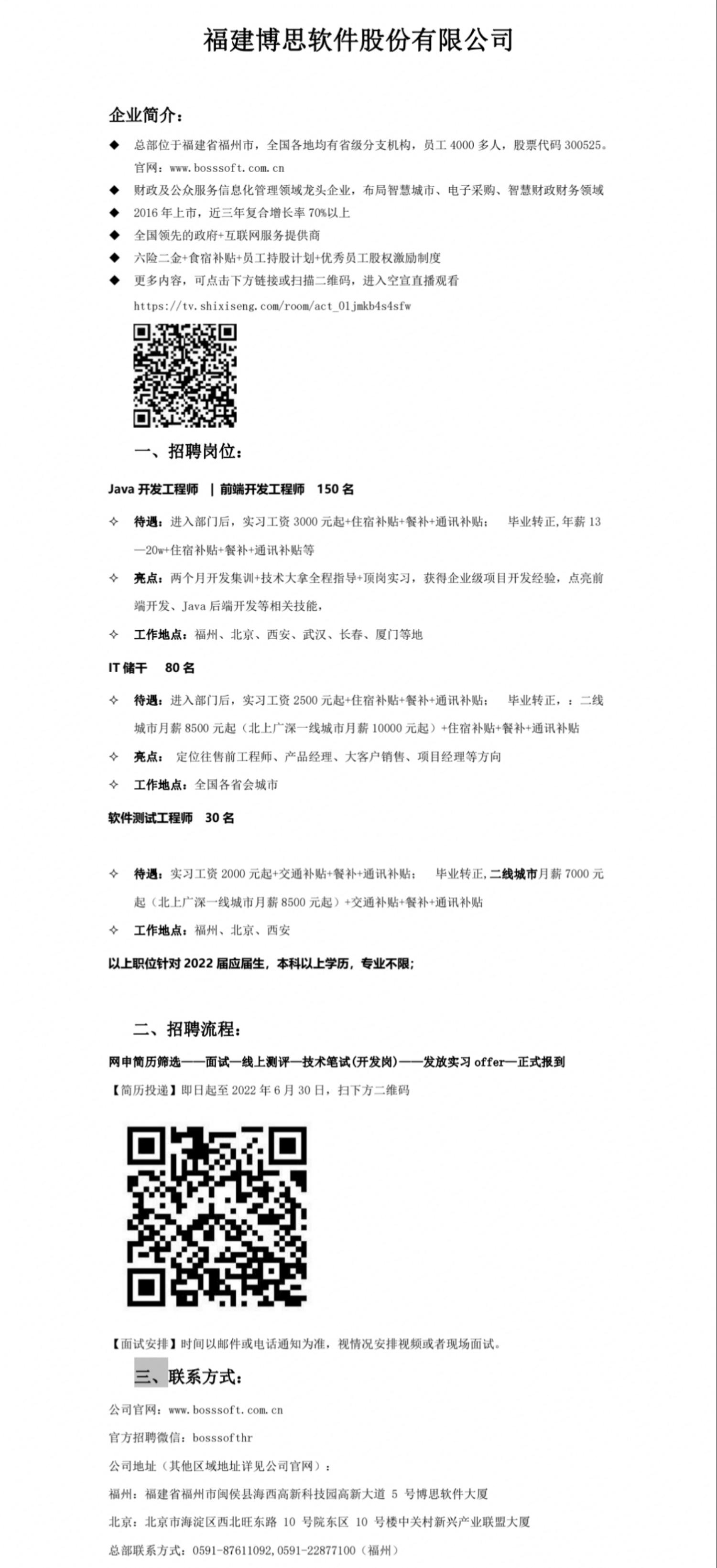【招聘信息】福建博思软件股份有限公司