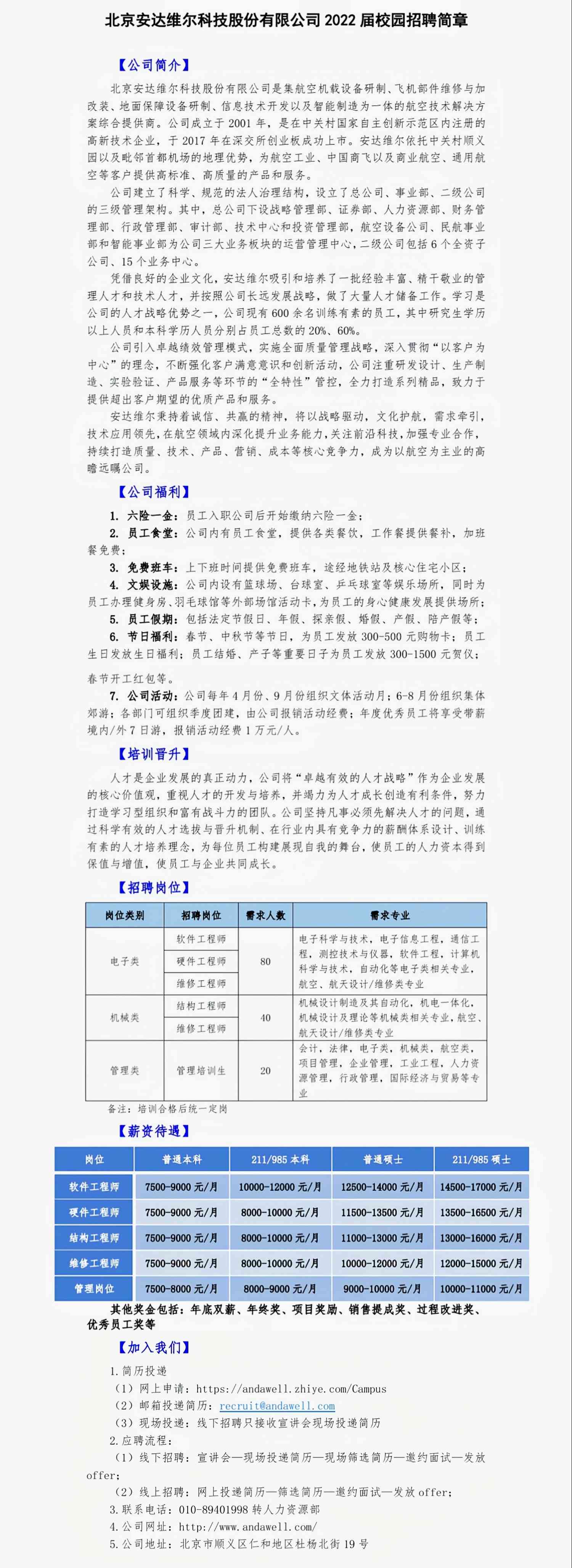 【招聘信息】北京安达维尔科技股份有限公司2022届校园招聘